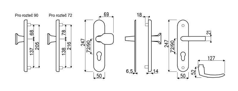 Pro jinou tloušťku dveří než je uvedeno v nabídce, je možno doobjednat prodlužovací sadu. Cena sady je 100,-kč.