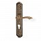 Rustikální kování s patinovanou povrchovou úpravou a zaoblenou rukojetí.