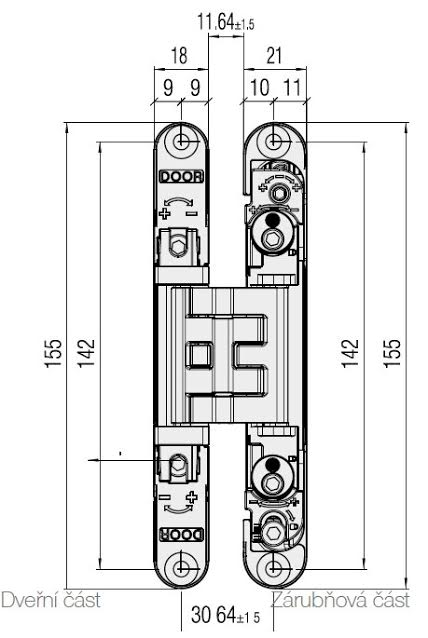 3D seřiditelný skrytý závěs pro bezfalcové dveře vhodný do obložkových i kovových zárubní.